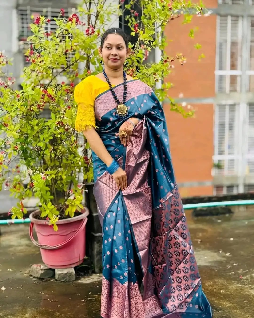 - একটি কাতান সিল্ক বেনারসি শাড়ি