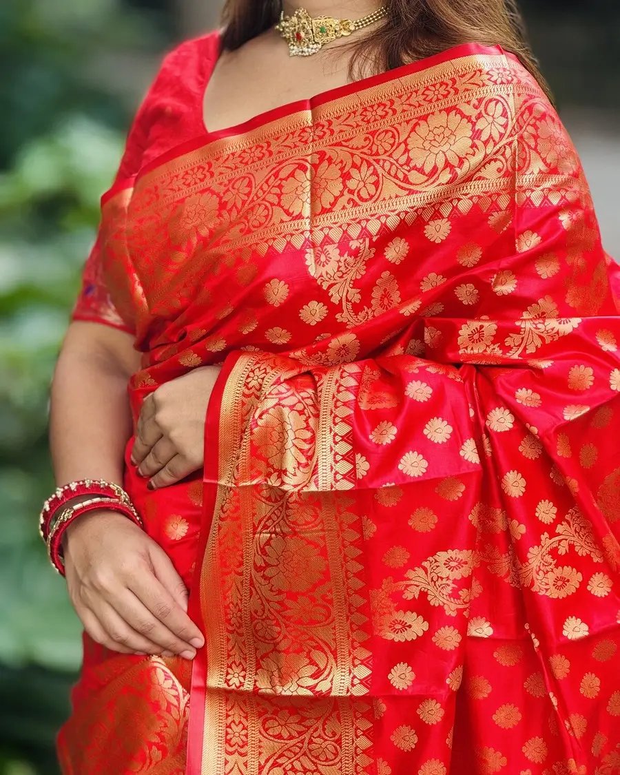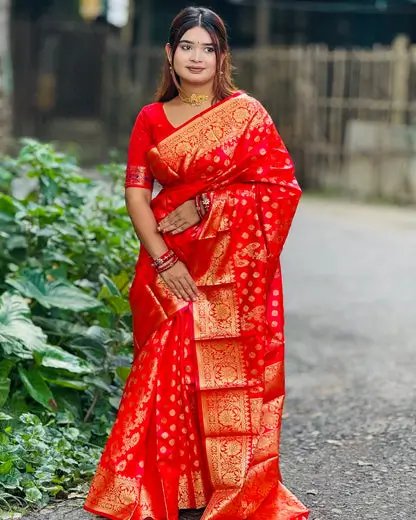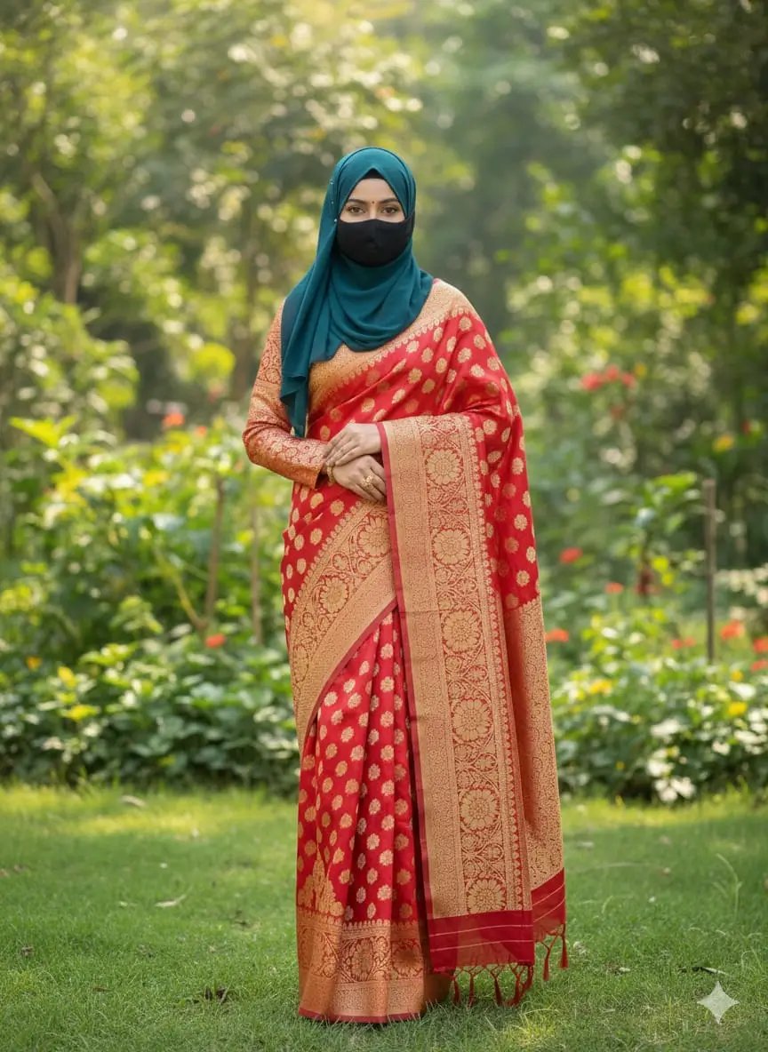 লাল বেনারসি সিল্ক কাতান শাড়ি কম্বো প্যাকেজ